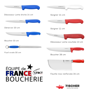 Née d’une rencontre enrichissante entre notre entreprise FISCHER, spécialisée dans la coutellerie et le fusil à aiguiser, et la CNCT, cette mallette a été conçue pour accompagner l’Équipe de France à l’occasion du World Butcher Challenge 2025 à Paris. Nous sommes fiers d’être le partenaire officiel de cette manifestation, affirmant ainsi notre engagement aux côtés des meilleurs artisans bouchers.
